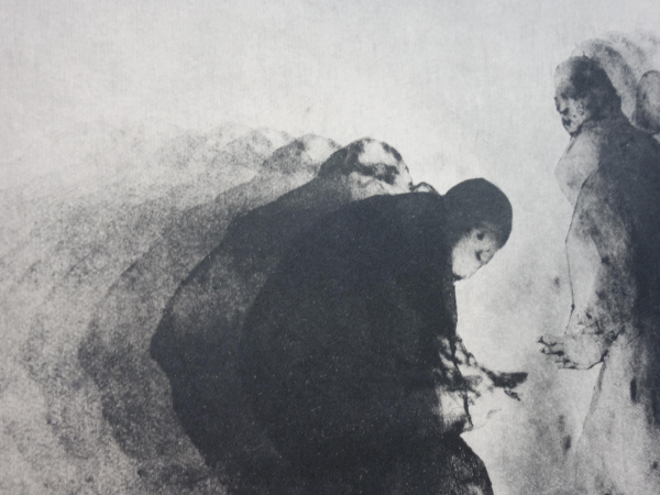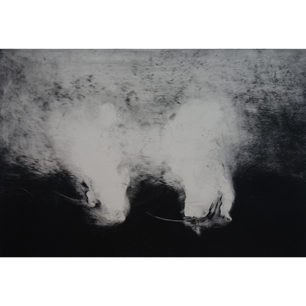Dans ce travail l'imprimeur prend le pas sur le graveur. J'ai gouté la spontanéité de "salir la plaque", faire le montage des formes découpées et gravées et laisser naitre une image qui n'existe qu'une seule fois.